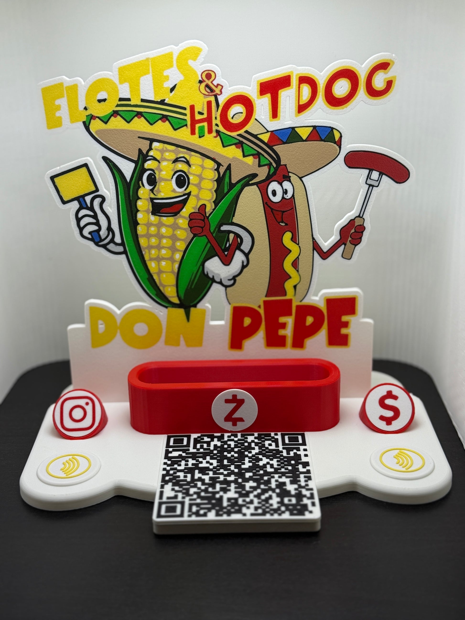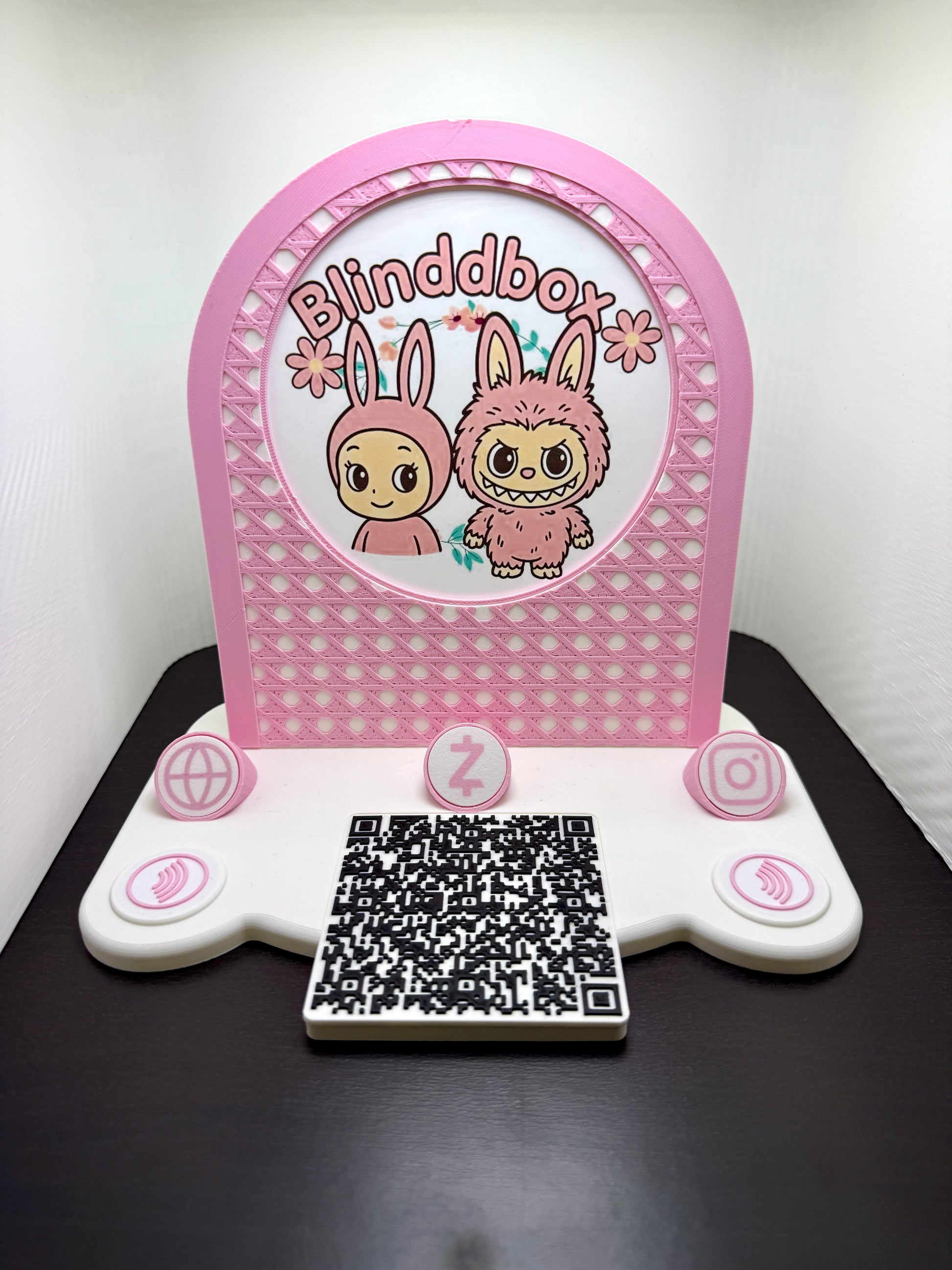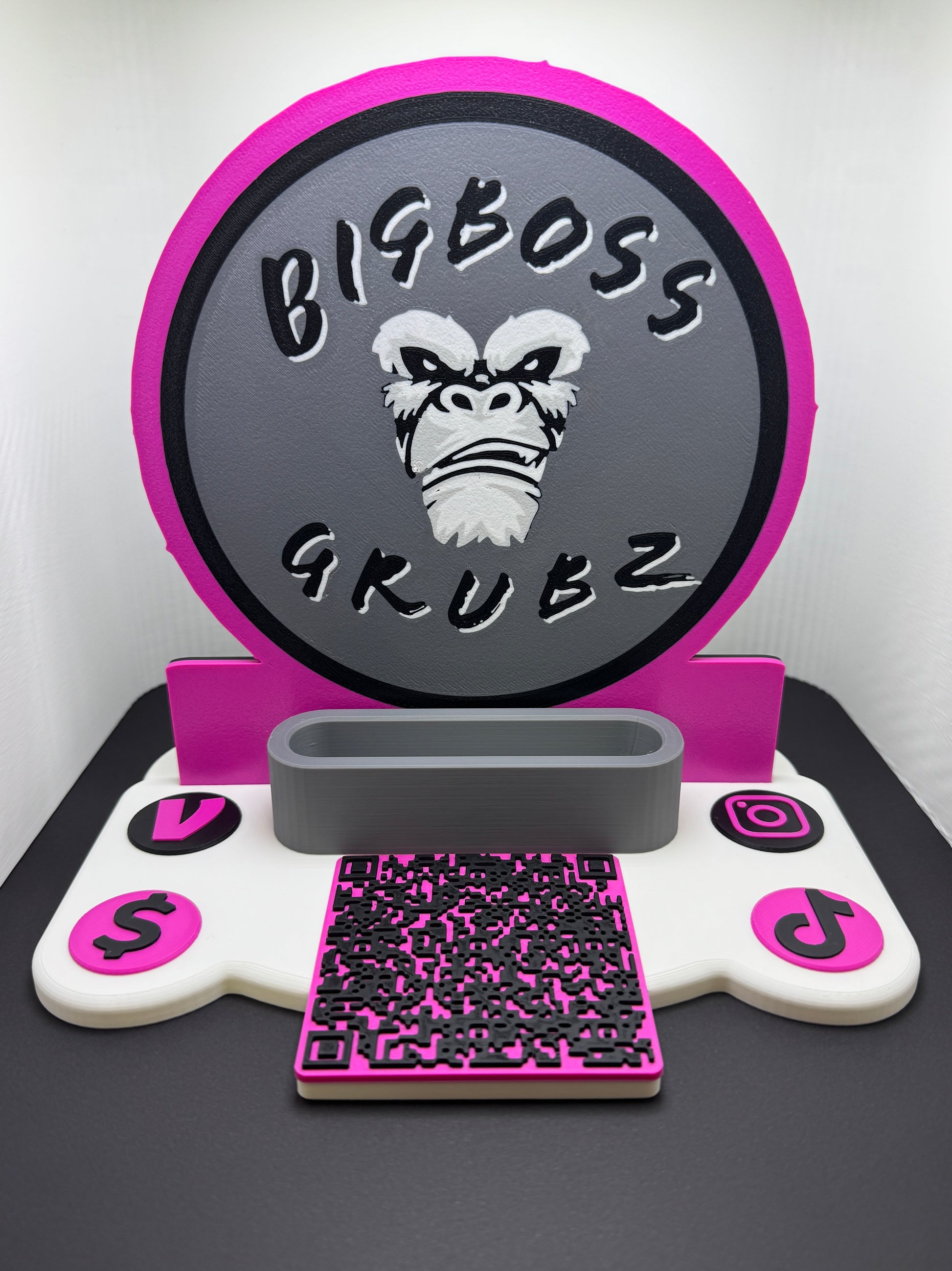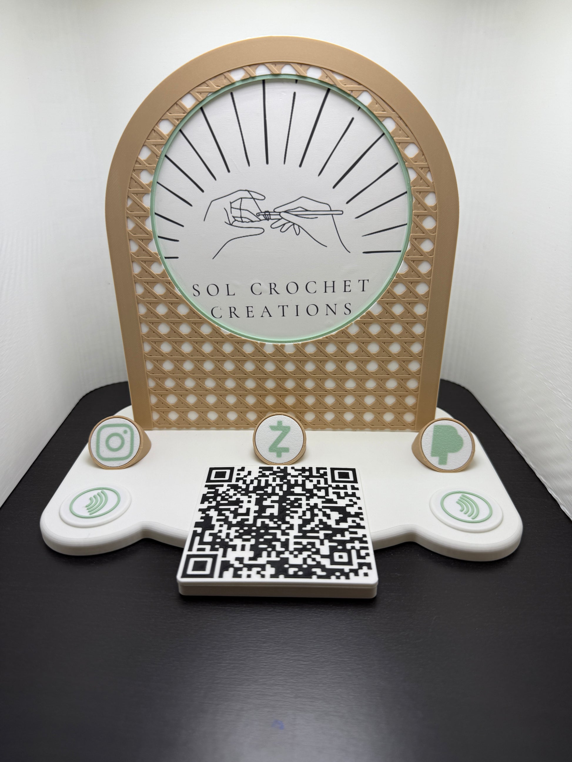 Showcase your business with this sleek PLA-made vendor stand. Designed to support 3–5 payment or social links, it’s perfect for markets, shops, or events. Optional customizations include a business card holder to keep your info front and center.
