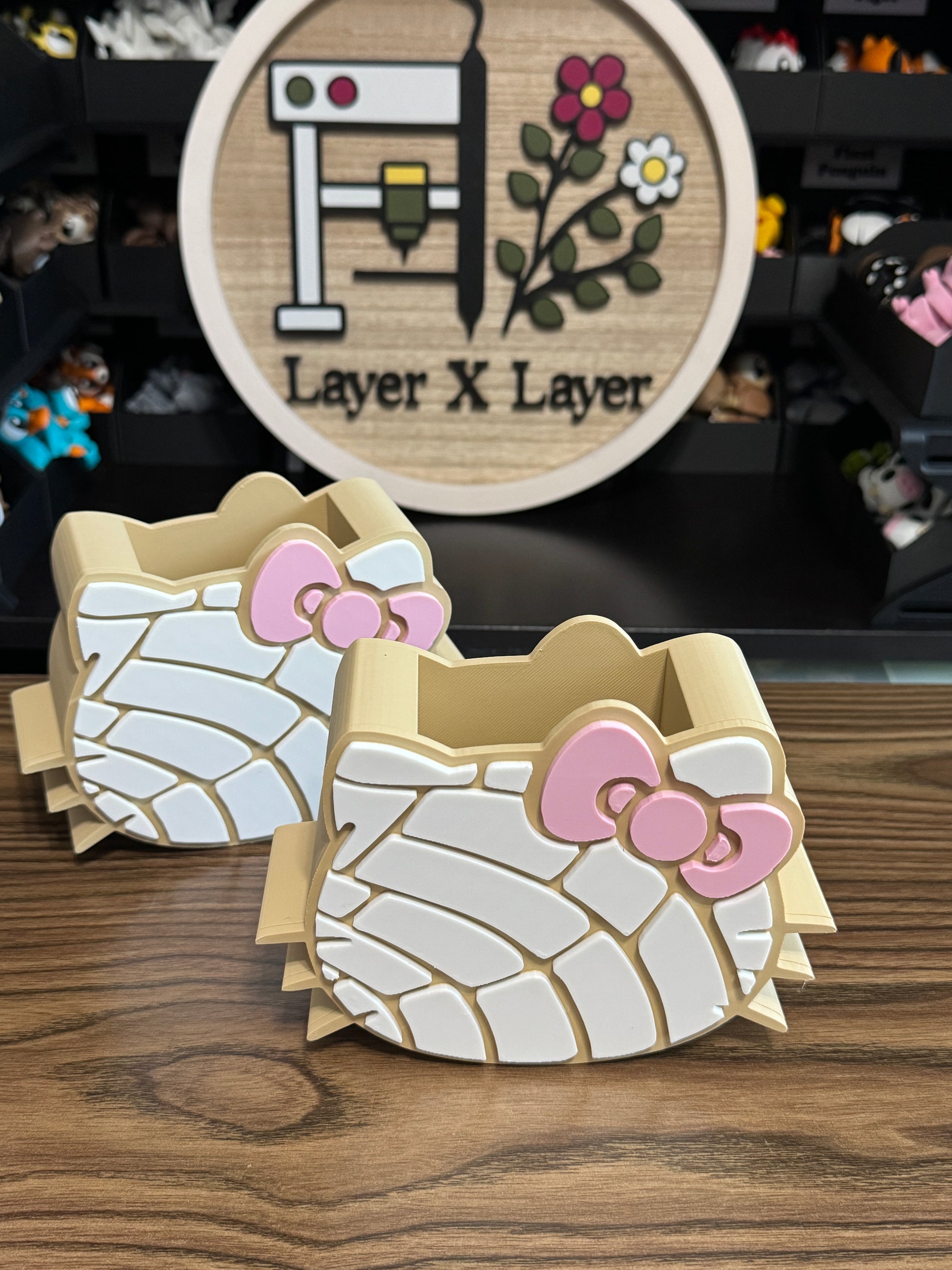 Sweet, cute, and functional! This 3D printed Hello Kitty concha keeps your pens and sticky notes organized in the most adorable way. Perfect for any desk or Hello Kitty fan! 🍞✨