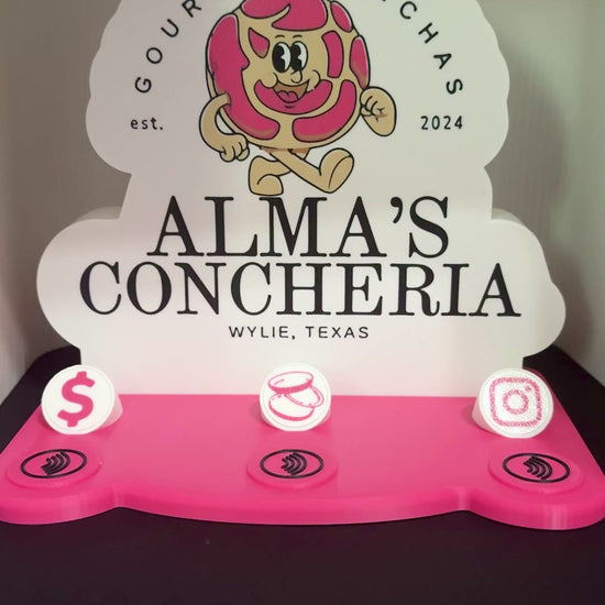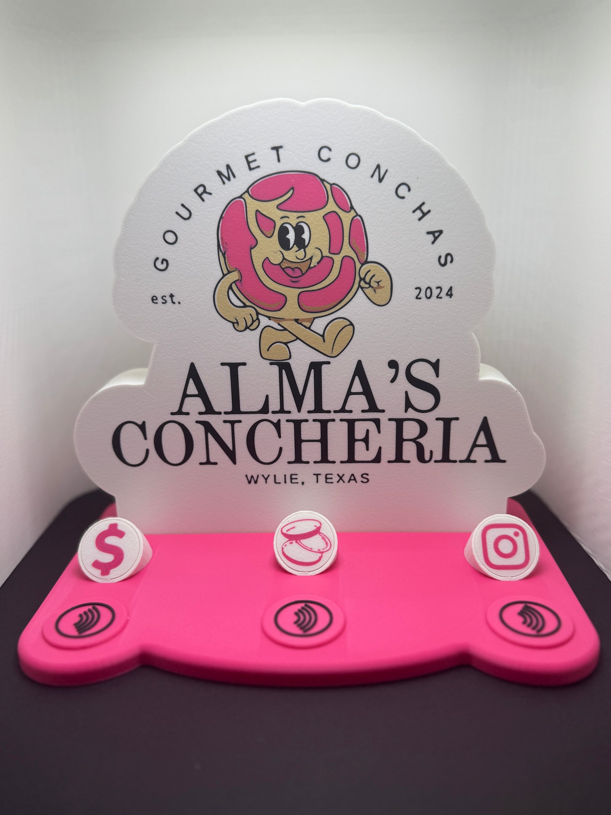 Lightbox Vendor Stand – A custom 3D printed display made to showcase your brand in style. Features bright battery-powered LED strips for a portable glow that stands out at any event. Includes a custom order form to personalize your stand with your logo, links, and layout preferences: Order Form