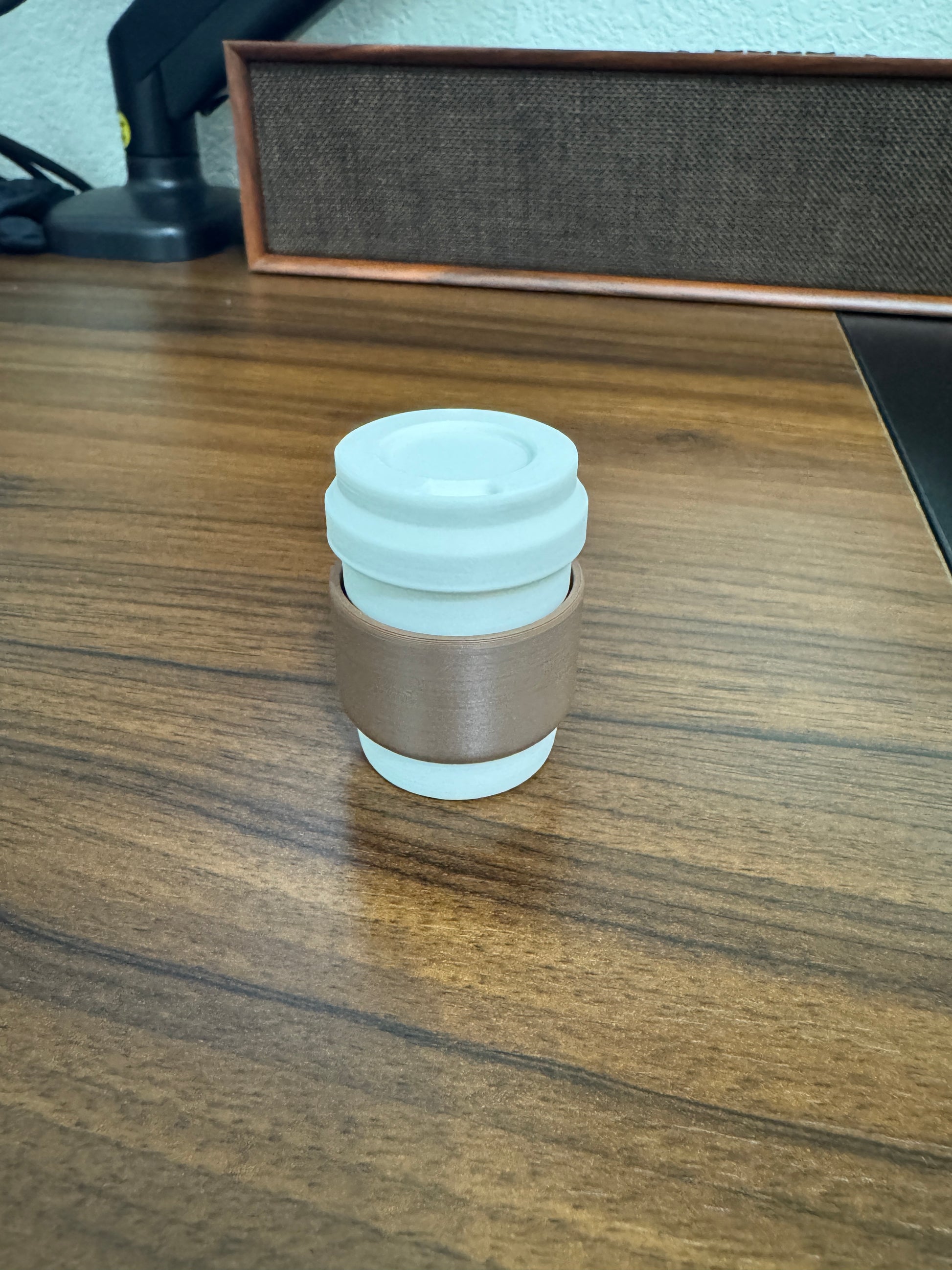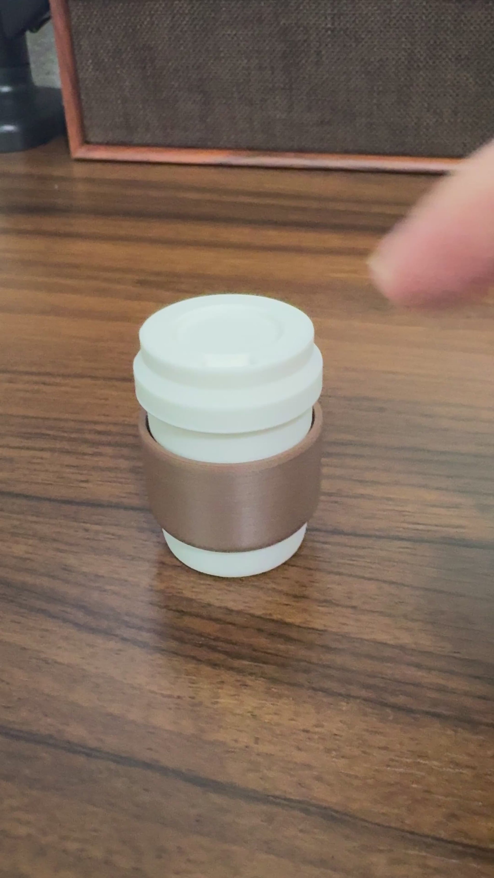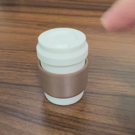 This 3D-printed miniature coffee-to-go cup is a fun and unique clicker accessory. Perfect for collectors or as a quirky addition to your desk, it features detailed design and portability, mimicking a real-life coffee cup in a compact, miniature form. Ideal for enthusiasts or as a novelty gift!